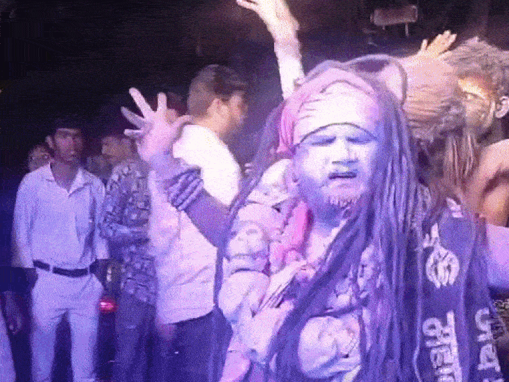 भोपाल में दुर्गा प्रतिमा स्थापना जुलूस:अघोरियों की टोली ने ढोल-नगाड़ों पर किया नृत्य; मुंह से आग उगलते कलाकार बने आकर्षण का केंद्र