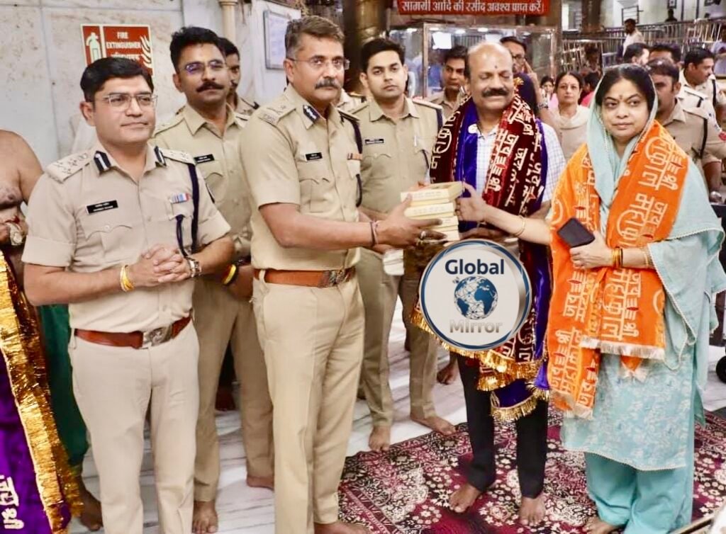 मध्यप्रदेश के पुलिस महानिदेशक (डीजीपी) कैलाश मकवाना ने आज उज्जैन स्थित विश्व प्रसिद्ध श्री महाकालेश्वर मंदिर पहुंचकर बाबा महाकाल के दर्शन किए। श्री मकवाना ने नंदी हॉल में बाबा महाकाल का पूजन-अर्चन कर प्रदेश में शांति, सुरक्षा एवं खुशहाली की कामना की। मंदिर के पुजारियों द्वारा शास्त्रोक्त विधि से पूजन संपन्न कराया गया एवं उन्हें शॉल-श्रीफल भेंट कर सम्मानित किया गया। दर्शन के उपरांत डीजीपी ने मंदिर परिसर की सुरक्षा व्यवस्था का भी जायजा लिया और संबंधित अधिकारियों को आवश्यक दिशा-निर्देश दिए। इस अवसर पर उज्जैन रेंज आईजी, पुलिस अधीक्षक सहित अन्य वरिष्ठ प्रशासनिक व पुलिस अधिकारी उपस्थित रहे।